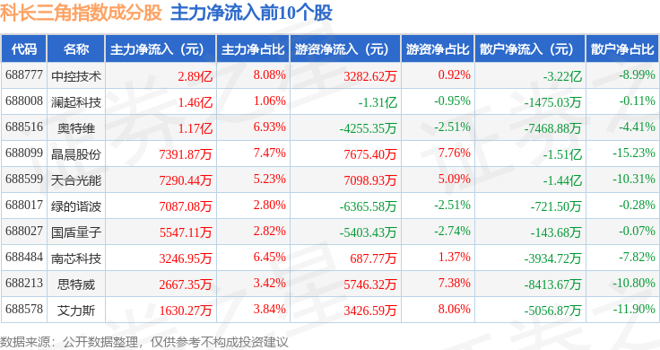资金流向方面,科长三角(000695)指数成份股当日主力资金净流出合计16.59亿元,游资资金净流入合计19.49亿元,散户资金净流出合计2.9亿元。成份股资金流向详情见下表: