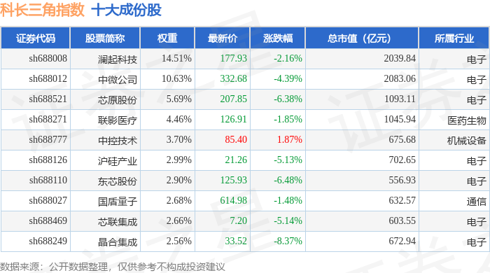 科长三角(000695)指数十大成份股详情如下: