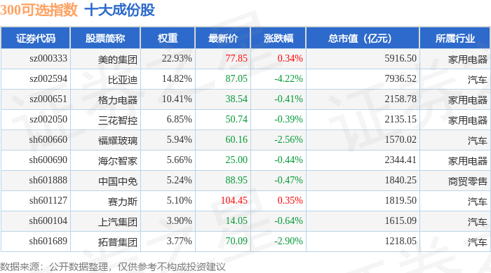 300可选(000911)指数十大成份股详情如下: