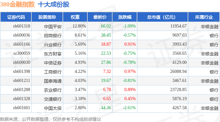 300金融(000914)指数十大成份股详情如下: