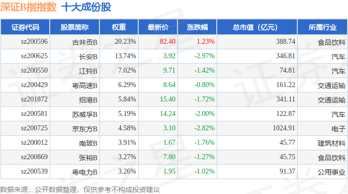 资金流向方面,深证B指(399108)指数成份股当日主力资金净流出合计2188.52万元,游资资金净流入合计912.94万元,散户资金净流入合计1275.58万元。成份股资金流向详情见下表: