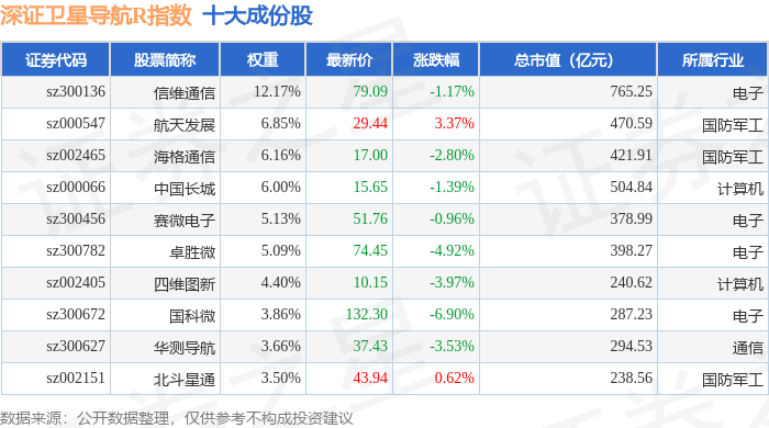 深证卫星导航R(470050)指数十大成份股详情如下: