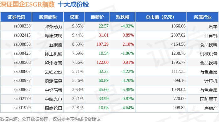 深证国企ESGR(470055)指数十大成份股详情如下: