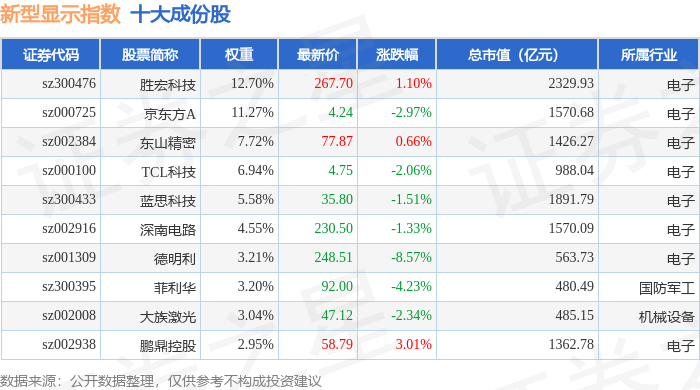 证券之星消息,2月2日,新型显示(970048)指数报收于2073.65点,跌2.1%,成交624.98亿元,换手率2.61%。当日该指数成份股中,上涨的有5家,鹏鼎控股以3.01%的涨幅领涨,下跌的有44家,富满微以11.84%的跌幅领跌。
