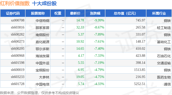 红利价值(989016)指数十大成份股详情如下: