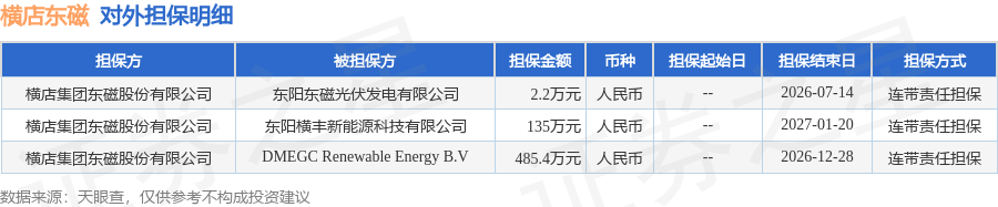 横店东磁1月30日披露3笔对外担保,被担保公司3家。对外担保明细如下表: