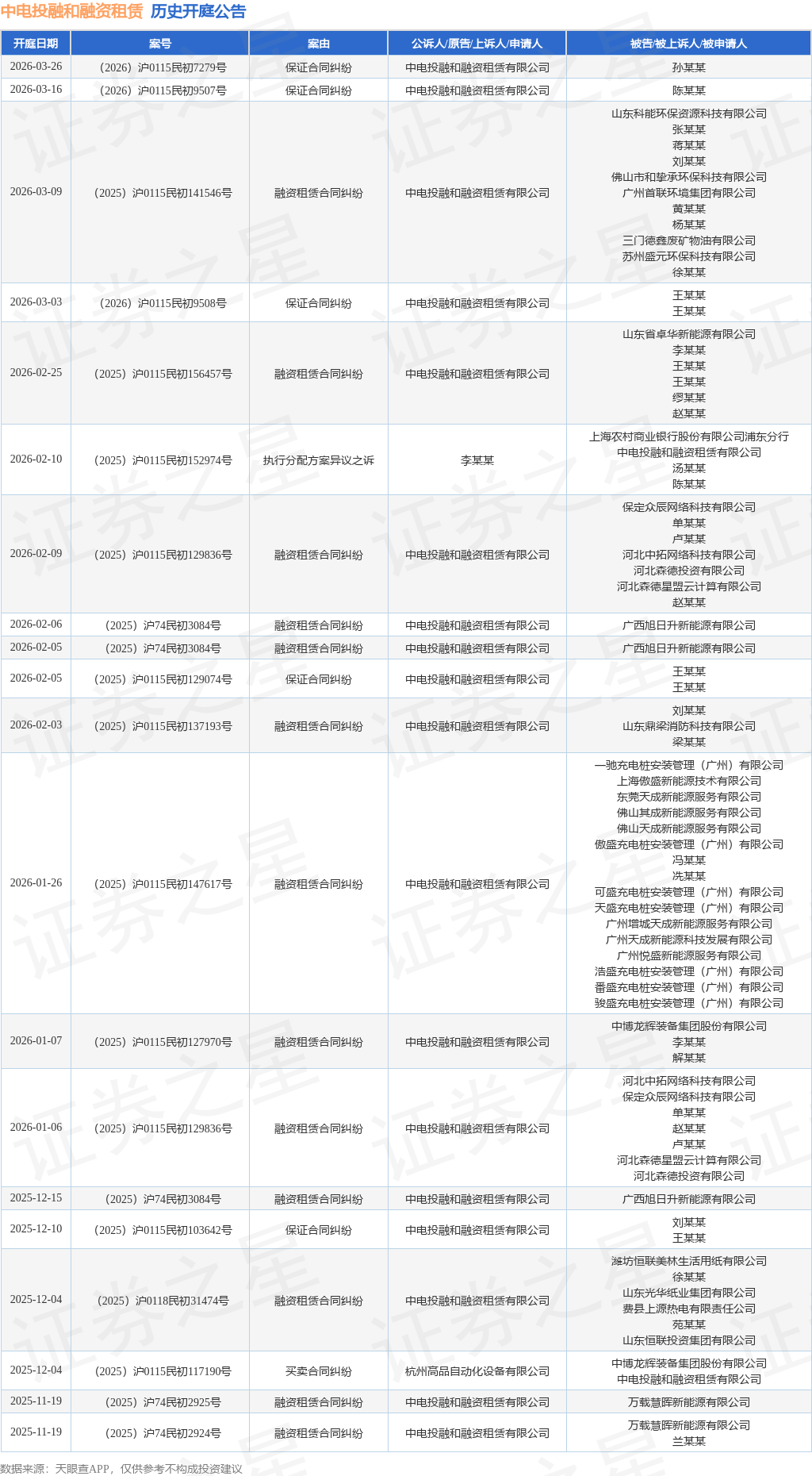 证券之星消息,根据天眼查APP显示,近日公布了一则中电投融和融资租赁有限公司作为原告/上诉人的开庭公告,详细内容如下: