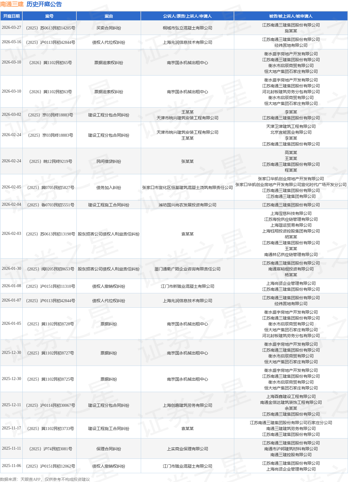 证券之星消息,根据天眼查APP显示,近日公布了一则江苏南通三建集团股份有限公司作为被告/被上诉人的开庭公告,详细内容如下: