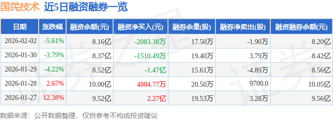 证券之星消息,截至2026年2月2日收盘,国民技术(300077)报收于22.05元,下跌5.61%,换手率7.35%,成交量41.62万手,成交额9.33亿元。