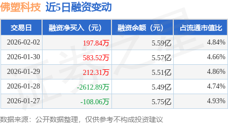 证券之星消息,2月2日,佛塑科技(000973)融资买入2804.41万元,融资偿还2606.57万元,融资净买入197.84万元,融资余额5.59亿元,近3个交易日已连续净买入累计993.67万元。