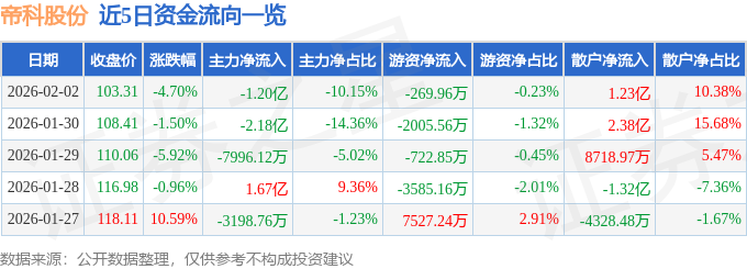 2月2日的资金流向数据方面,主力资金净流出1.2亿元,占总成交额10.15%,游资资金净流出269.96万元,占总成交额0.23%,散户资金净流入1.23亿元,占总成交额10.38%。
