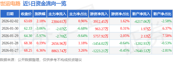 2月2日的资金流向数据方面,主力资金净流入2304.61万元,占总成交额0.96%,游资资金净流入3912.45万元,占总成交额1.62%,散户资金净流出6217.06万元,占总成交额2.58%。