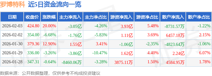 2月3日的资金流向数据方面,主力资金净流出3.05亿元,占总成交额4.26%,游资资金净流入3.93亿元,占总成交额5.48%,散户资金净流出8731.57万元,占总成交额1.22%。