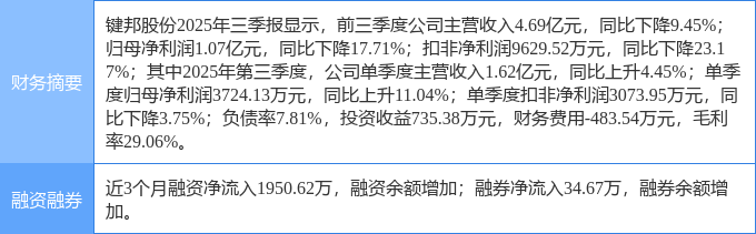 证券之星消息,键邦股份2月3日涨停收盘,收盘价34.99元。该股于11点18分涨停,未打开涨停,截止收盘封单资金为1.12亿元,占其流通市值5.14%。