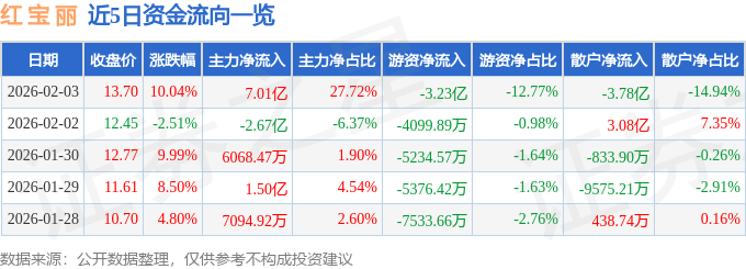2月3日的资金流向数据方面,主力资金净流入7.01亿元,占总成交额27.72%,游资资金净流出3.23亿元,占总成交额12.77%,散户资金净流出3.78亿元,占总成交额14.94%。