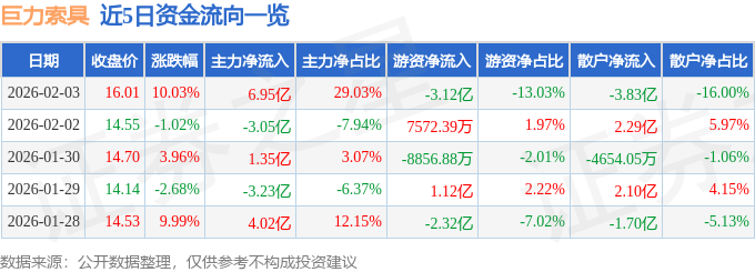 2月3日的资金流向数据方面,主力资金净流入6.95亿元,占总成交额29.03%,游资资金净流出3.12亿元,占总成交额13.03%,散户资金净流出3.83亿元,占总成交额16.0%。