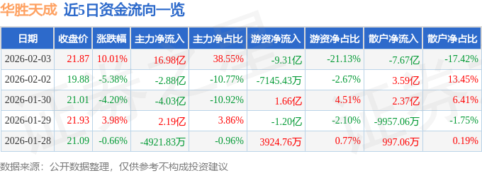 2月3日的资金流向数据方面,主力资金净流入16.98亿元,占总成交额38.55%,游资资金净流出9.31亿元,占总成交额21.13%,散户资金净流出7.67亿元,占总成交额17.42%。