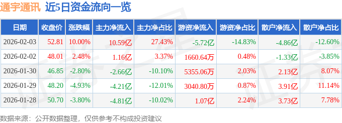 2月3日的资金流向数据方面,主力资金净流入10.59亿元,占总成交额27.43%,游资资金净流出5.72亿元,占总成交额14.83%,散户资金净流出4.86亿元,占总成交额12.6%。