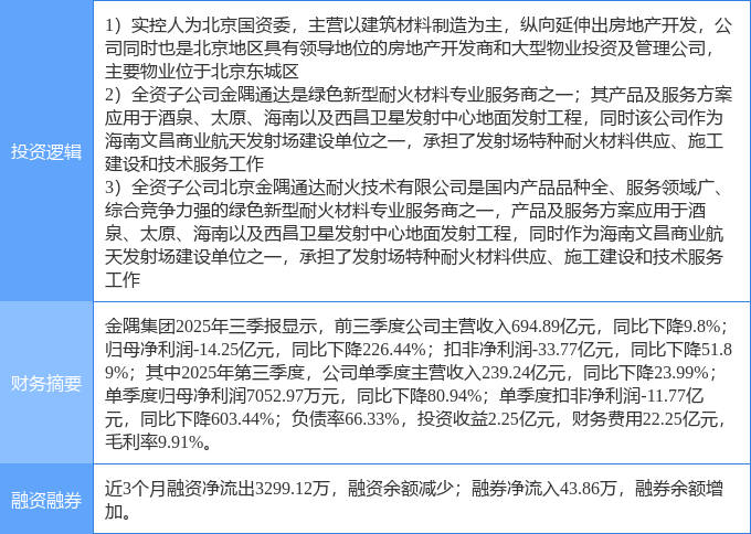 证券之星消息,金隅集团2月3日涨停收盘,收盘价2.09元。该股于9点33分涨停,1次打开涨停,截止收盘封单资金为4828.38万元,占其流通市值0.28%。