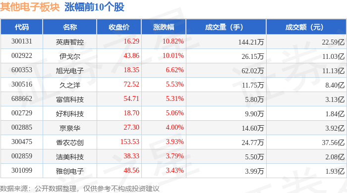 证券之星消息,2月3日其他电子板块较上一交易日上涨3.55%,英唐智控领涨。当日上证指数报收于4067.74,上涨1.29%。深证成指报收于14127.1,上涨2.19%。其他电子板块个股涨跌见下表:
