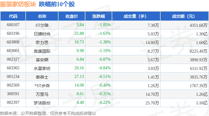 从资金流向上来看,当日服装家纺板块主力资金净流出4133.81万元,游资资金净流出140.18万元,散户资金净流入4273.99万元。服装家纺板块个股资金流向见下表: