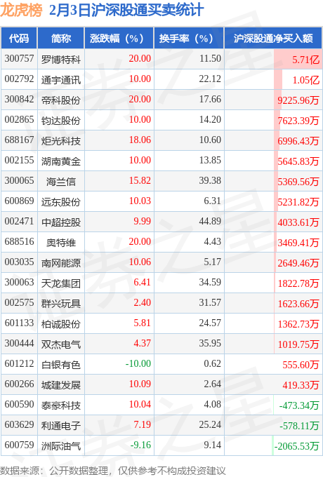 龙虎榜中有沪股通/深股通专用席位(北向资金)现身的个股共25家,其中罗博特科以净买入5.71亿元排名第一。详情见下表: