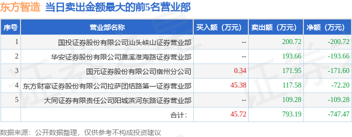 证券之星消息,沪深交易所2026年2月3日公布的交易公开信息显示,东方智造(002175)因日跌幅偏离值达到7%的前5只证券登上龙虎榜。此次是近5个交易日内第1次上榜。