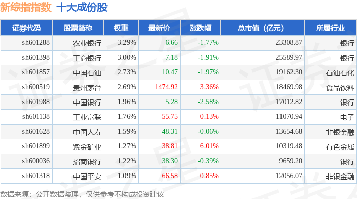 新综指(000017)指数十大成份股详情如下: