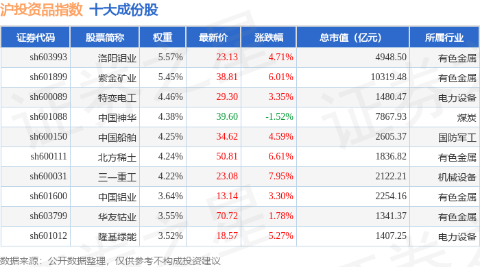 证券之星消息,2月3日,沪投资品(000102)指数报收于8514.77点,涨3.61%,成交1704.77亿元,换手率2.64%。当日该指数成份股中,上涨的有46家,晶科能源以13.27%的涨幅领涨,下跌的有4家,中国神华以1.52%的跌幅领跌。