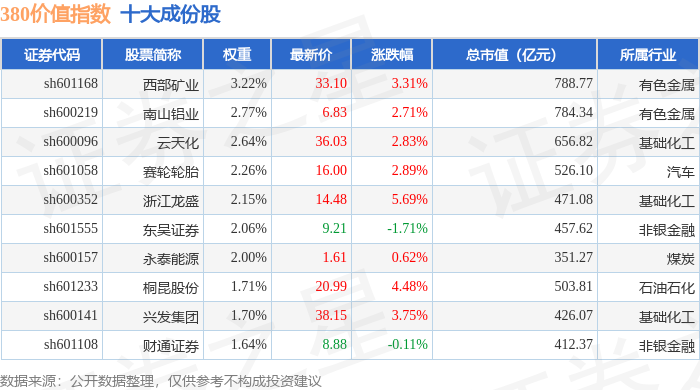 380价值(000118)指数十大成份股详情如下: