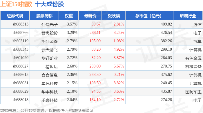 证券之星消息,2月3日,上证150(000133)指数报收于7611.67点,涨3.26%,成交581.37亿元,换手率4.51%。当日该指数成份股中,上涨的有136家,微导纳米以11.97%的涨幅领涨,下跌的有12家,大连圣亚以3.13%的跌幅领跌。