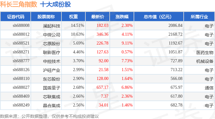 科长三角(000695)指数十大成份股详情如下: