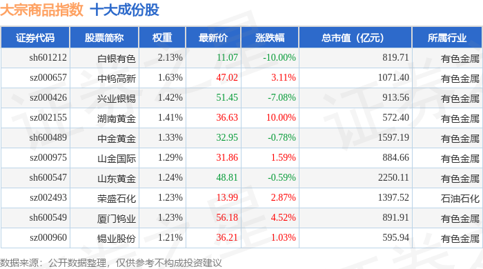 大宗商品(000979)指数十大成份股详情如下: