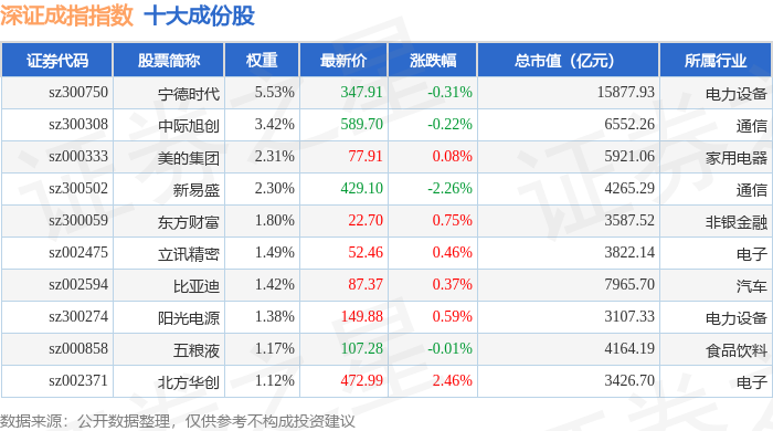 资金流向方面,深证成指(399001)指数成份股当日主力资金净流入合计38.29亿元,游资资金净流出合计51.61亿元,散户资金净流入合计13.32亿元。成份股资金流向详情见下表: