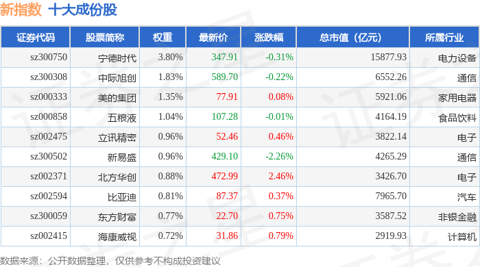 新指数(399100)十大成份股详情如下: