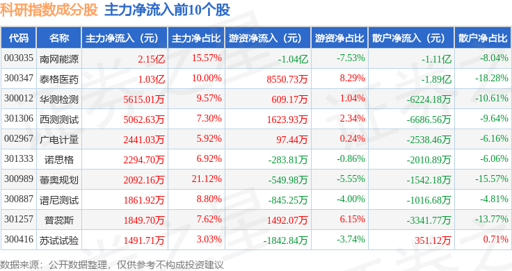 资金流向方面,科研指数(399243)成份股当日主力资金净流入合计3.53亿元,游资资金净流出合计6626.4万元,散户资金净流出合计2.86亿元。成份股资金流向详情见下表: