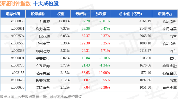 深证时钟(399644)指数十大成份股详情如下: