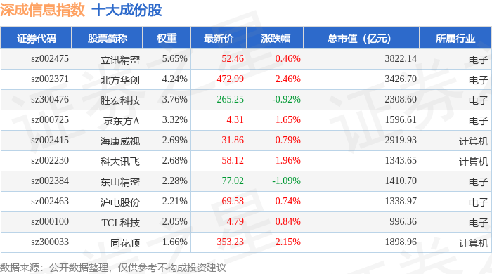 深成信息(399687)指数十大成份股详情如下: