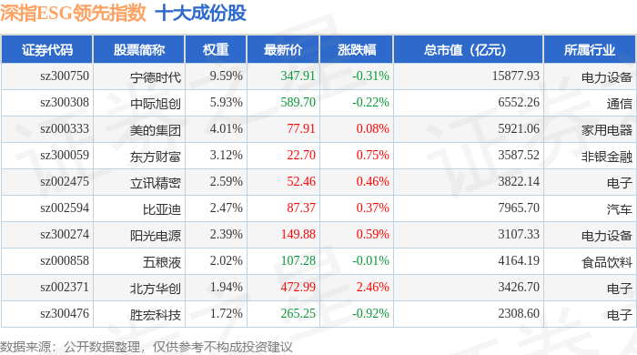 深指ESG领先(970029)指数十大成份股详情如下: