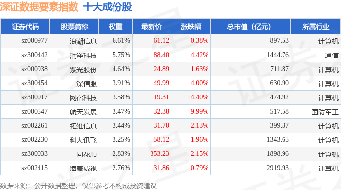 深证数据要素(970053)指数十大成份股详情如下: