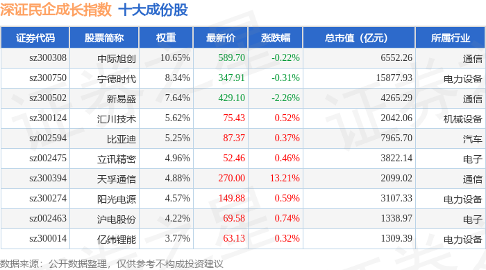深证民企成长(970071)指数十大成份股详情如下: