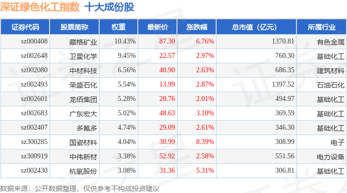 深证绿色化工(970076)指数十大成份股详情如下:
