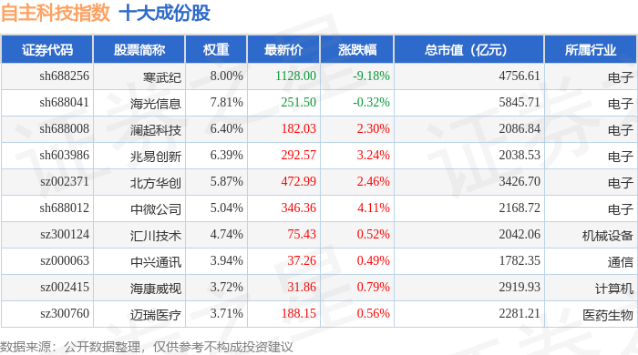 自主科技(980033)指数十大成份股详情如下: