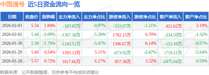 证券之星消息,截至2026年2月3日收盘,中国通号(688009)报收于5.54元,上涨1.84%,换手率0.4%,成交量34.89万手,成交额1.93亿元。