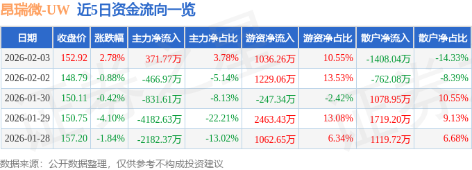 2月3日的资金流向数据方面,主力资金净流入371.77万元,占总成交额3.78%,游资资金净流入1036.26万元,占总成交额10.55%,散户资金净流出1408.04万元,占总成交额14.33%。