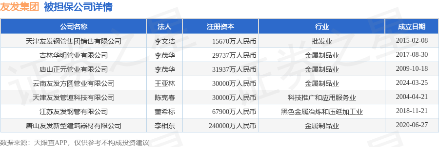 友发集团2月2日披露15笔对外担保,被担保公司9家。担保金额排在前十的对外担保明细如下表: