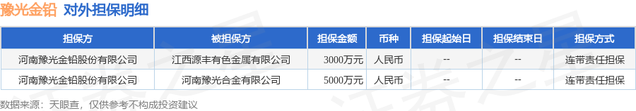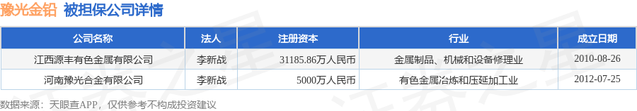 豫光金铅2月2日披露2笔对外担保,被担保公司2家。对外担保明细如下表: