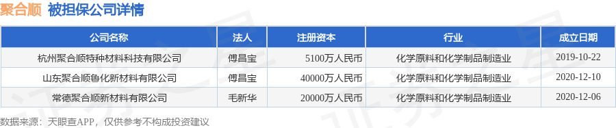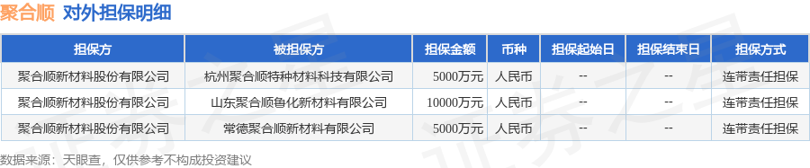 聚合顺2月2日披露3笔对外担保,被担保公司3家。对外担保明细如下表: