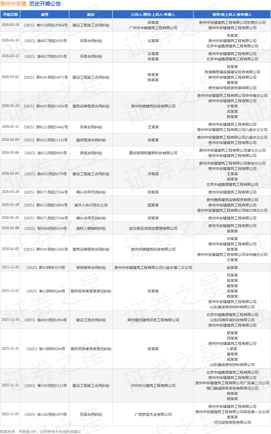 证券之星消息,根据天眼查APP显示,近日公布了一则贵州中安建建筑工程有限公司作为被告/被上诉人的开庭公告,详细内容如下: