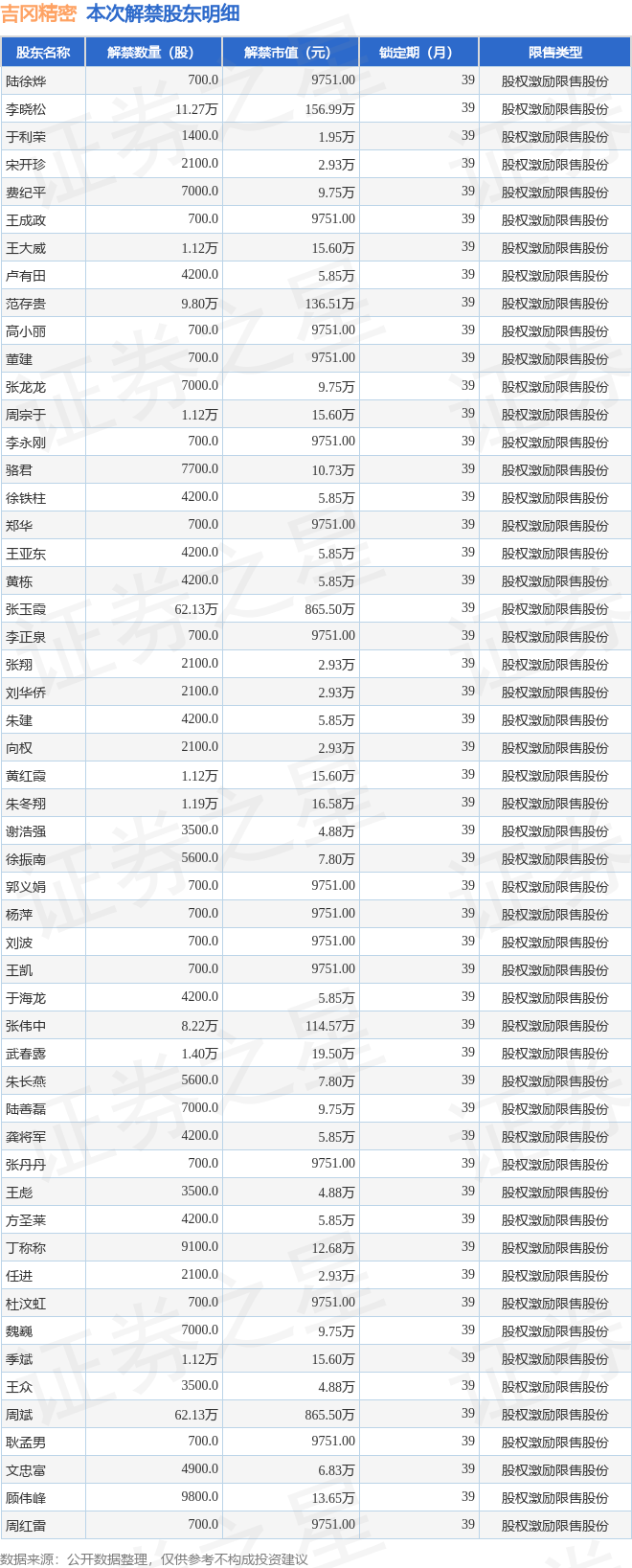 本次解禁涉及股东明细见下表: